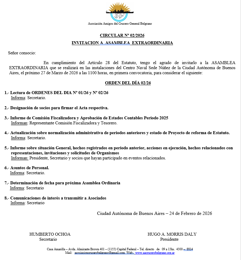 NOTA: En virtud que felizmente hemos recomenzado a compartir nuevamente en las Asambleas con Señores Asociados no integrantes de la Comisión Directiva, recomendamos informarnos con antelación al Whattsapp 011 1563531529 a los fines de prever las comodides necesarias segun la cantidad de concurrentes.
